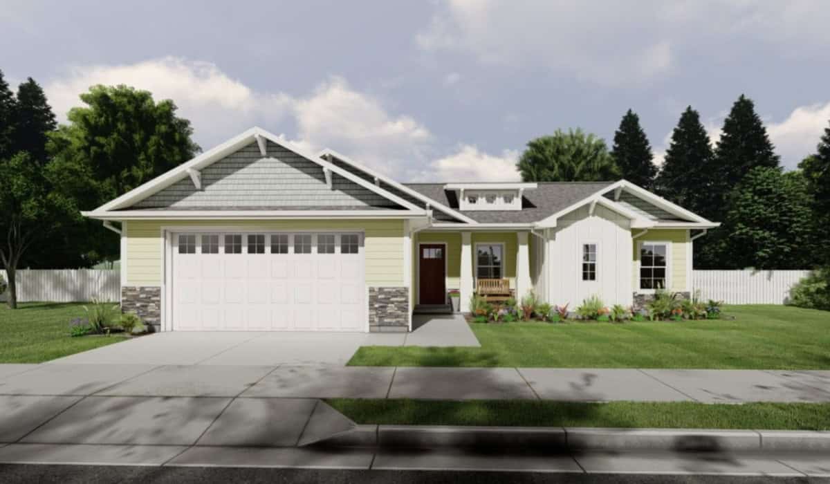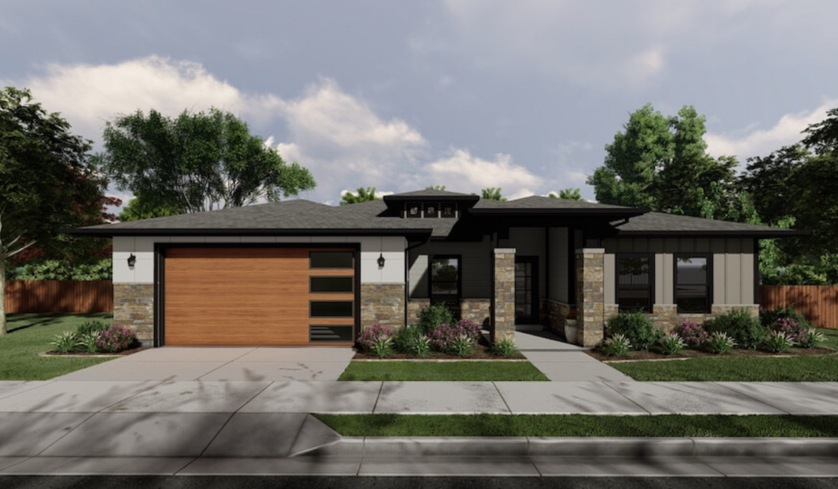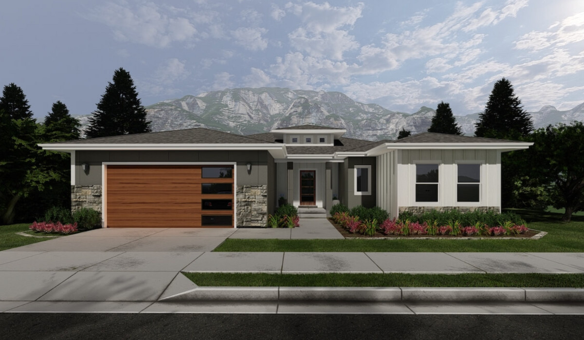 - A beautiful, contemporary single-story home featuring a well-maintained lawn, garden, and a two-car garage, located in a suburban neighborhood.